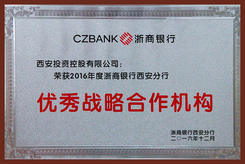 2016年度浙商銀行西安分行優(yōu)秀戰(zhàn)略合作機構(gòu)