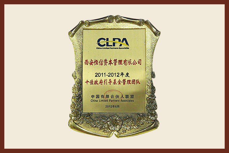 西安恒信資本管理有限公司2011-2012年度十佳政府引導(dǎo)基金管理團隊